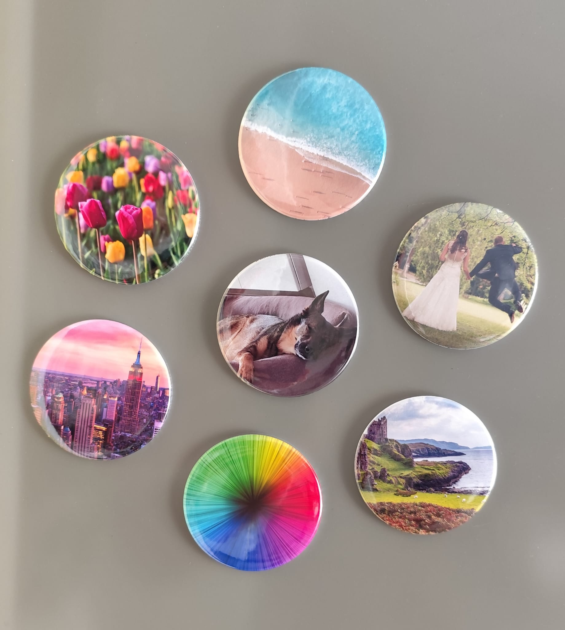 Ob witzige Schnappschüsse, emotionale Augenblicke oder echte Herzensfotos – auf unseren hochwertigen runden Magneten bekommen deine Bilder den Platz, den sie verdienen.